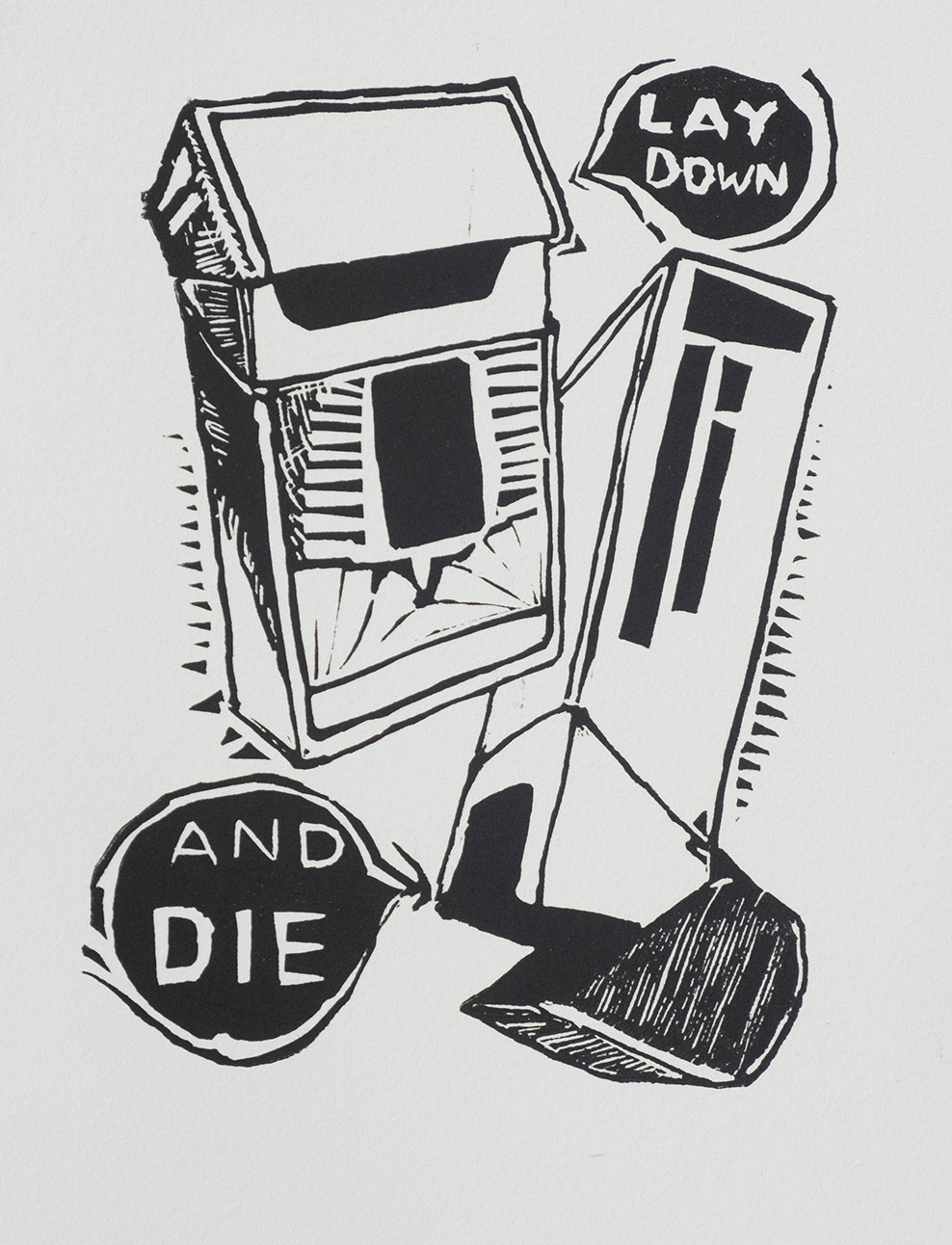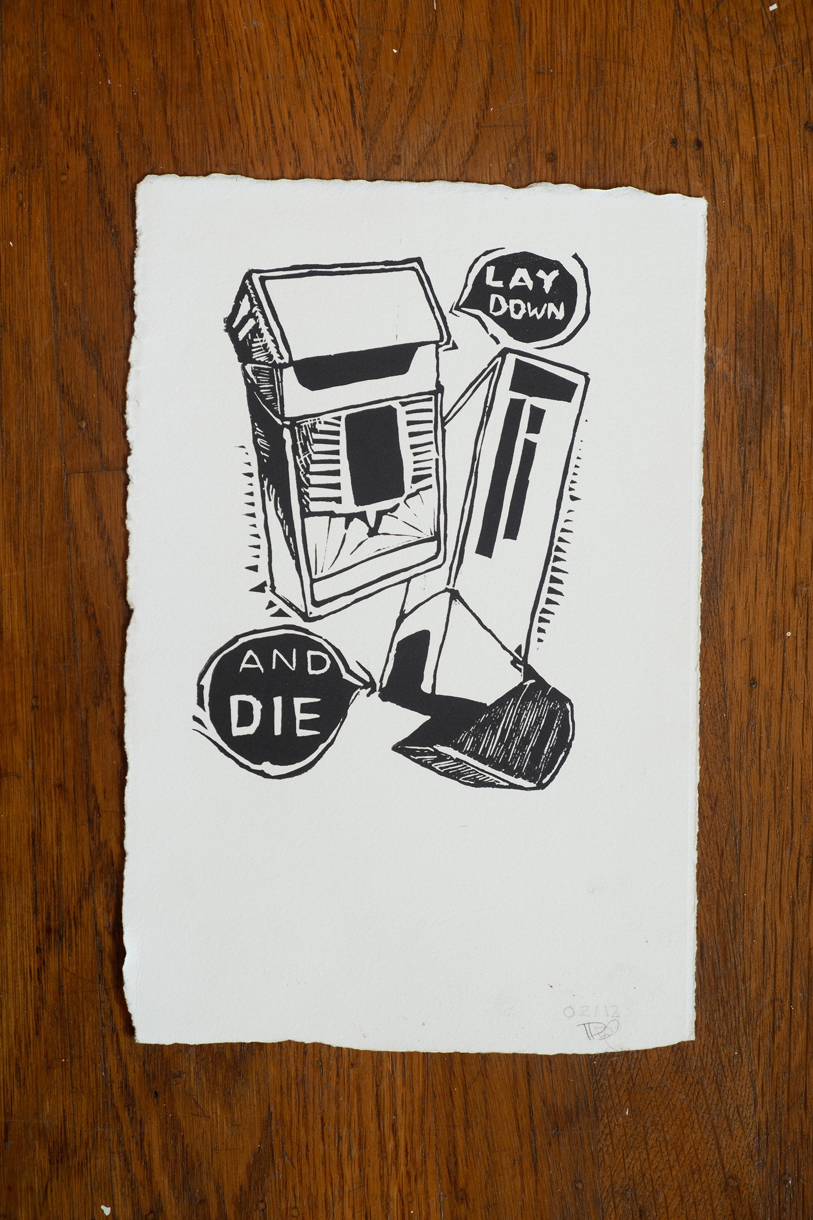 8.5x11 printed on Rives BFK Process Black Lithography Ink Edition of 12