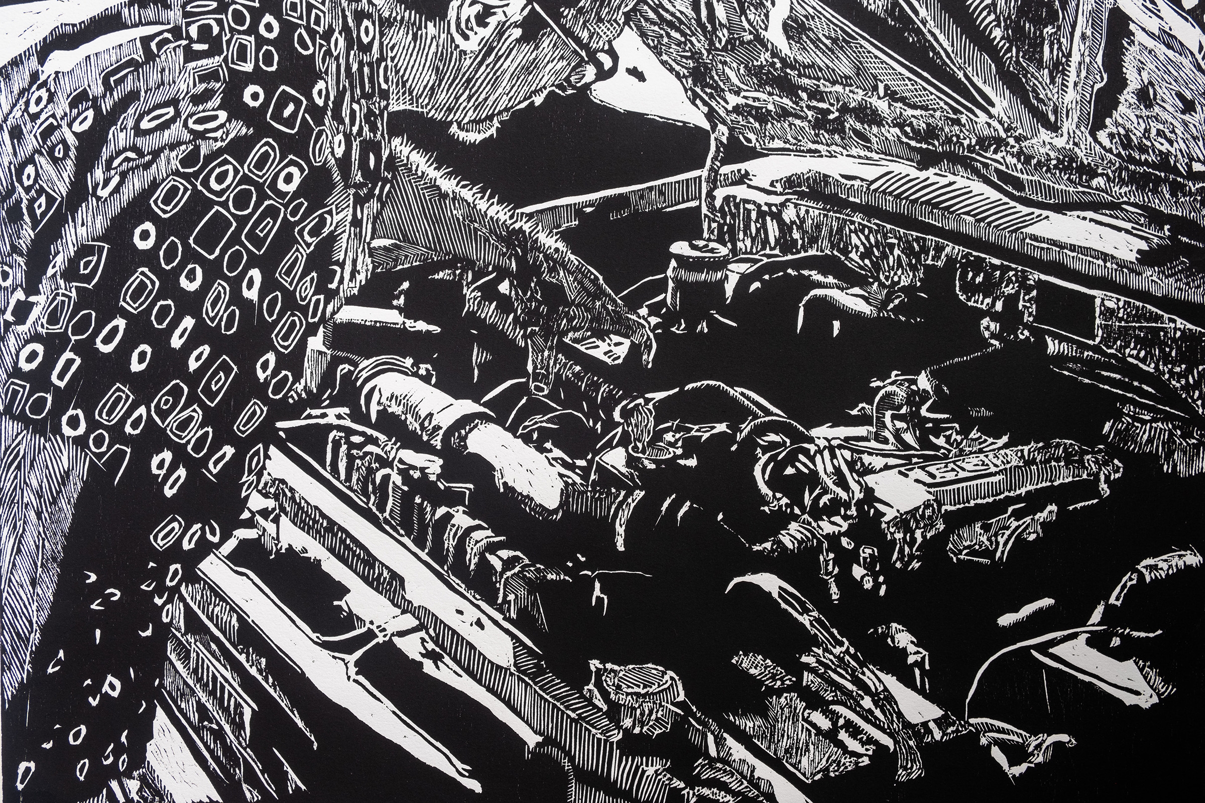 24x36 printed on Rives BFK Black Woodcut ink Edition of 20