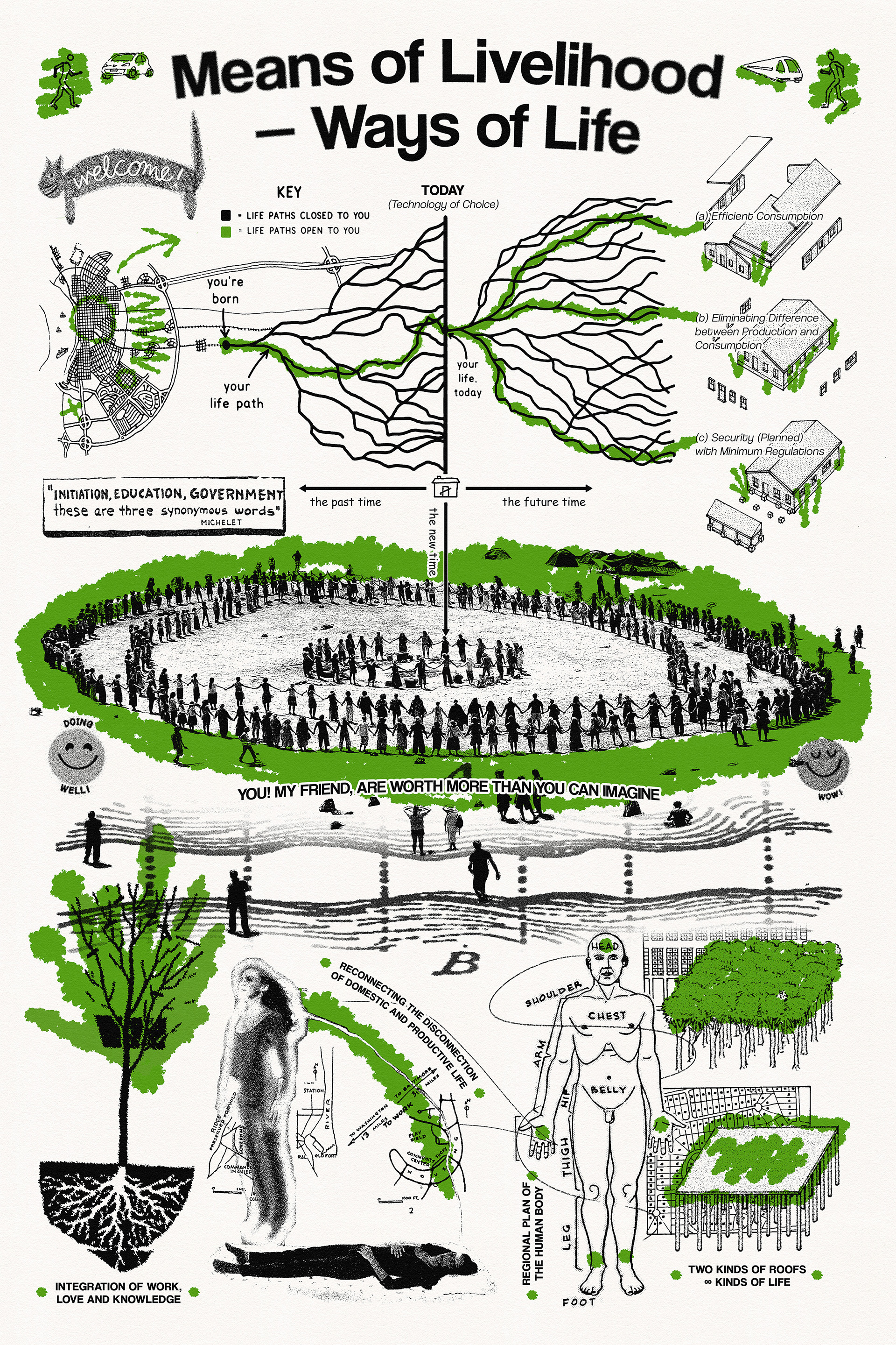The design is about our roles in life, both personal and professional and the choices we make intertwining them. It's about work as a means to happiness and what it means to fit into the mold of society. It's about recognizing that work, love and knowledge can be one in the same.